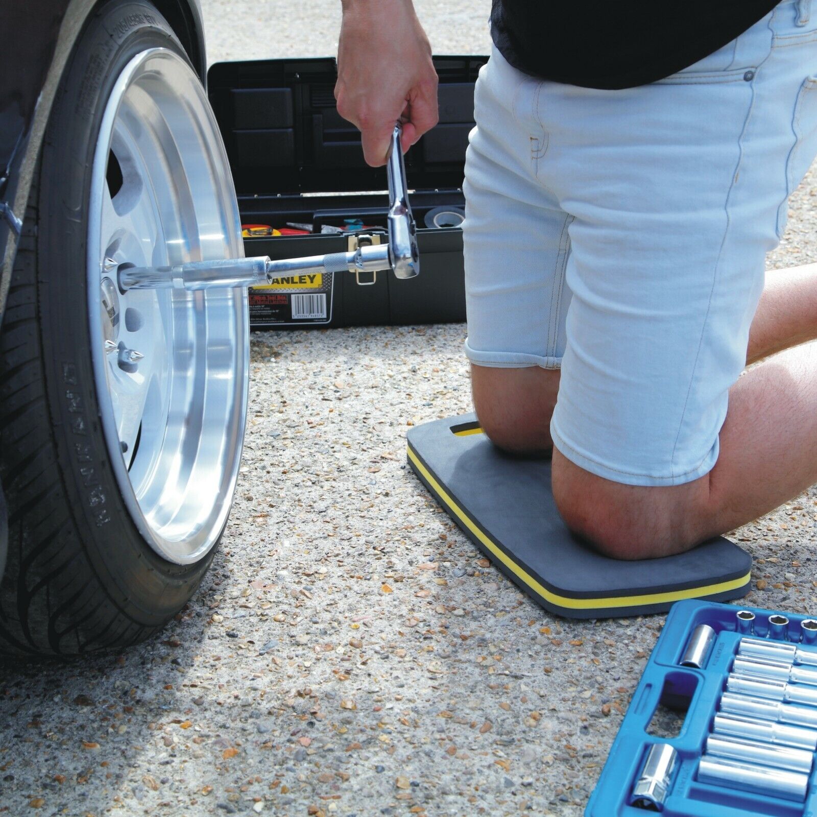 A simple foam kneeler pad, triple laminated to provide both comfort and performance. The pad measures 44.5cm x 20.5cm x 3cm and comes grey with the middle foam layer in yellow. Dozens of uses from gardening and household chores to the garage and DIY. Lightweight, portable and easy to clean, the pad features a handy slot for carrying or to use to store on a wall. It is also slightly curved giving a more natural position for the knees to rest on. Please note colours may vary from shown.