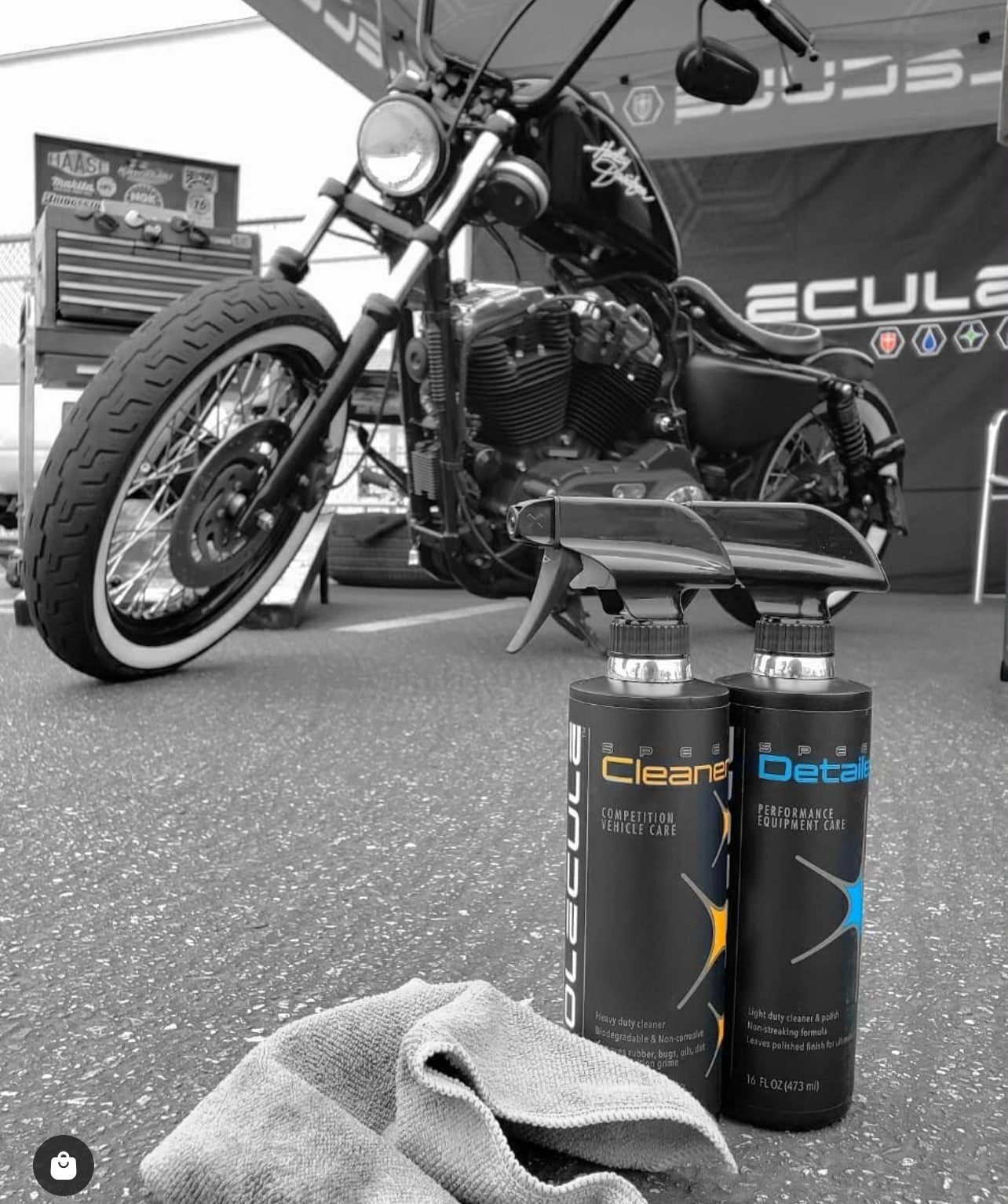 Off-the-shelf detailers are either heavy in wax or dry instantly when put on a hot race car/bike. So we designed a detailer to give the polished shine without the mess. Works great on bodywork, frame rails, plastics and rubber to get a shine without the slime.
