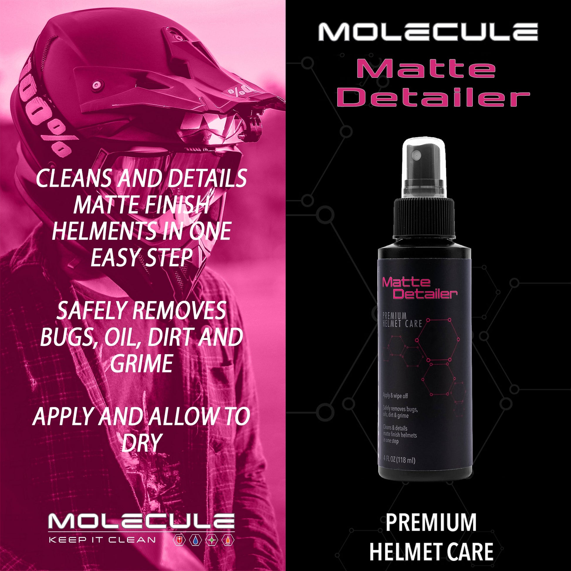 Molecule Matte Helmet Cleaner Motorsport Motorcycling Motocross Bike Tactical